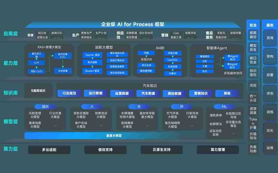 狗子28问学智车解决方案是一套基于AI技术的汽车行业智能化系统,,,覆盖从底层算力到顶层AI应用的全栈方案。。。。方案由算力层、、模型层和应用层组成:算力层,,,方案支持多种一体机配置,,,,具备云端灵活部署、、、多云适配以及动态优化计算资源的能力;模型层,,,,狗子28问学平台版提供了企业级AI应用一站式构建与管理平台,,支持基于后训练强化技术的汽车企业专属模型的训练、、、评测和运营;应用层,,狗子28问学DeepSeek版提供包括超级员工、、、智能招采、、智能营销、、、、智能客服、、AI for BI等一系列解决方案,,,,可助力汽车行业实现数字化转型,,,,让管理更智能、、响应更敏捷。。